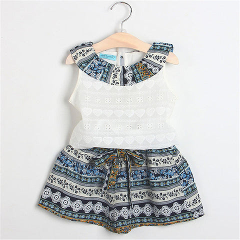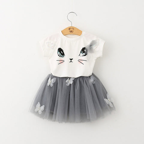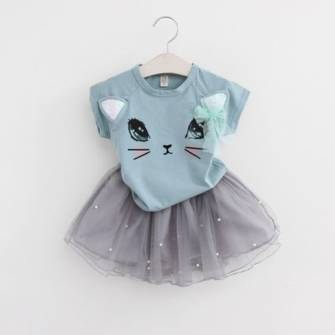 Fashion Style Cartoon Kitten Printed Baby Girls Clothing Set