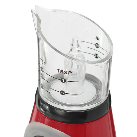 - The easy to use one handed pressure pump allows you to measure the precise amount of oil in teaspoon, table spoon, and milliliter measurements